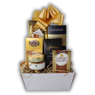 Kosz Prezentowy Słodki Podarunek to wyjątkowy i elegancki zestaw. Piękne opakowanie i starannie dobrane produkty sprawiają, że kosz jest gotowy do wręczenia jako prezent. Zestaw prezentowy doskonale sprawdzi się na każdą okazję – od urodzin, przez święta, po imieniny.